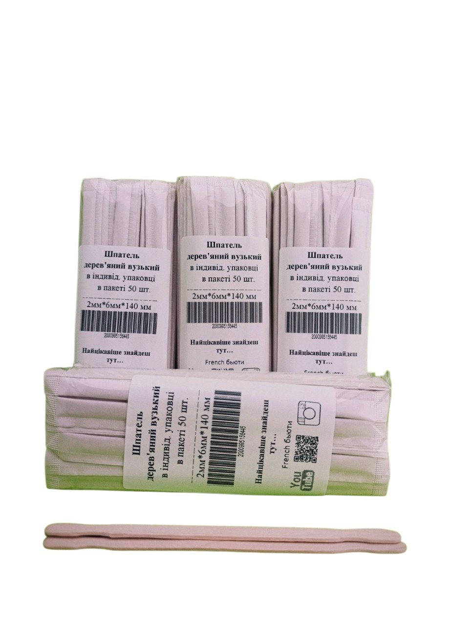 Вузький шпатель 2*6*140мм в індивідуальній упаковці, 50шт